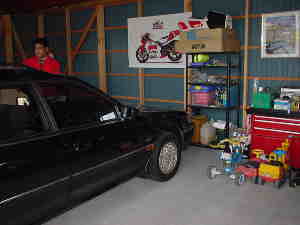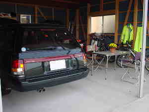 | 一言: スペースを大きくとったガレージ、とてもつかいやすそう。ガレージの前で子どもが遊び、遠くの山々には桜が咲いていた。このガレージの隅に座りこの景色を見ながらコーヒーを飲むときが、オーナーの至福の時であろう。 |