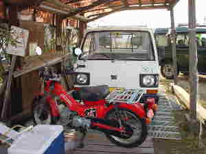一言:オーナーは上のランドローバーのオーナーと同一人物”ハンターカブ”とスバル”サンバー・4WD”も所有している見たいで ある。かなりの好き物に違いない。 | |